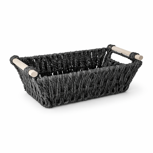 BLACK STORAGE RATTAN BASKET 30*16*10 cm