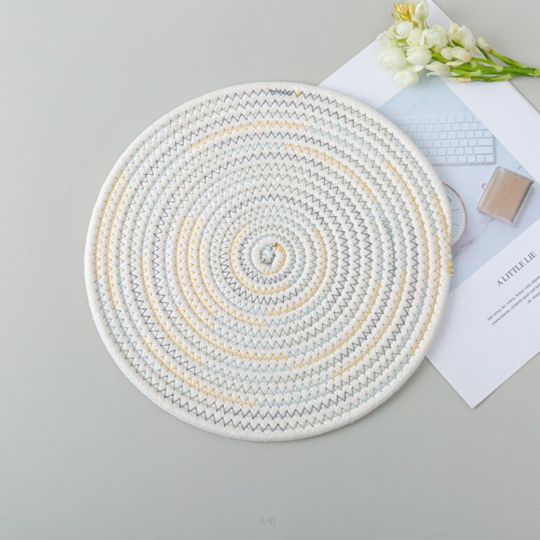This woven cotton round placemat table mat coaster is heat resistant and provides a perfect addition to your table setting. Protect your surfaces and add a touch of elegance with this versatile and durable placemat. Ideal for both formal and casual dining.