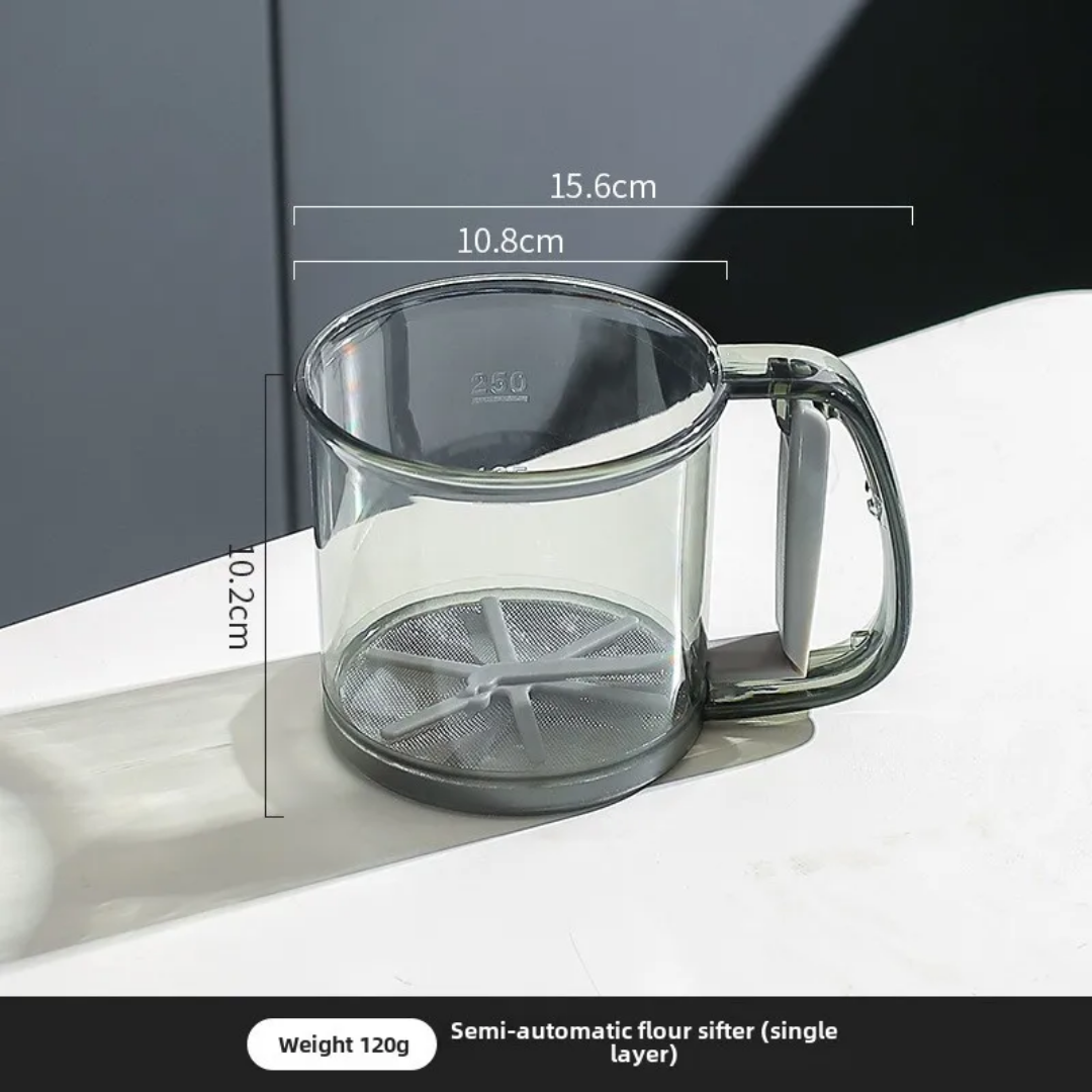 This flour sifter, measuring 10.2 by 10.8 cm, ensures precise and even flour distribution for baking. Its compact size makes it easy to handle and store, while the fine mesh helps eliminate lumps, resulting in smoother dough and batter. Ideal for professional and home bakers seeking consistent texture and improved baking results.