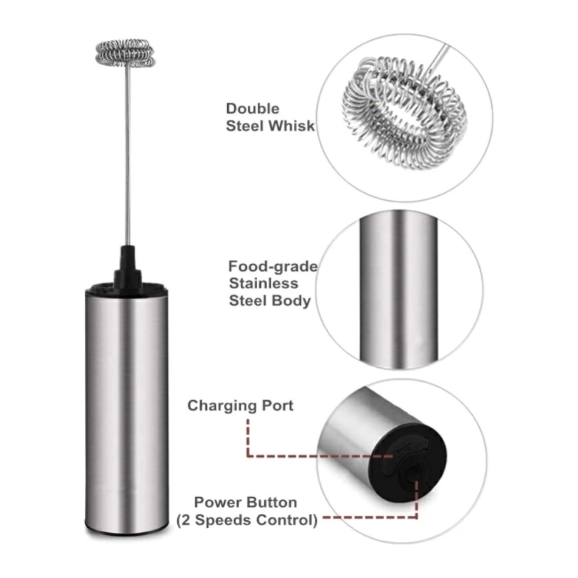 Elevate your coffee experience with this Stainless Steel Rechargeable Frother. Crafted from durable stainless steel, it delivers rich, creamy froth quickly and efficiently. Its rechargeable design ensures cordless convenience and portability, perfect for home or on-the-go use. Easy to clean and operate, this frother is an essential tool for creating café-quality beverages with professional results every time.