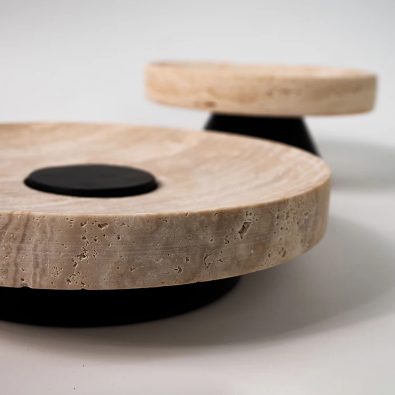 Travertine and natural wood base